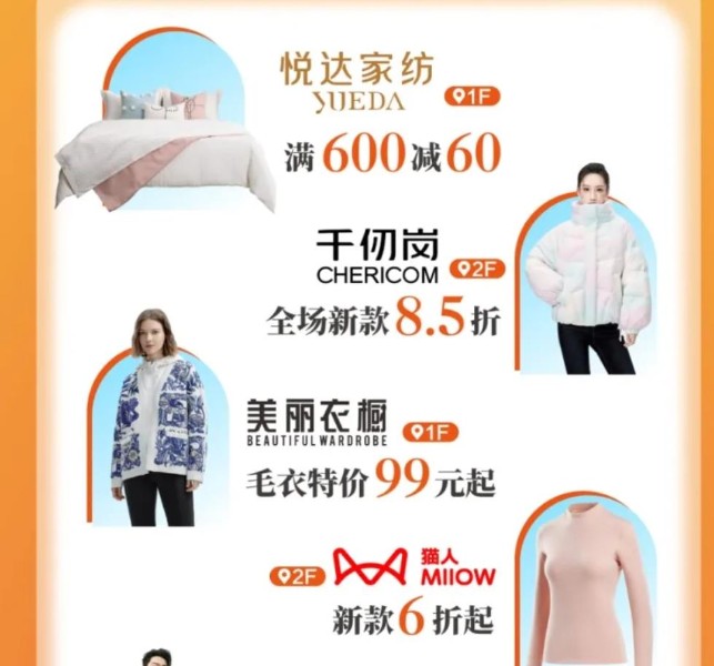 悦达889全场放价!悦达家纺600减60,美丽衣橱毛衣 99元起,森马冬装5折起,阿迪达斯8-8.5折;赵美丽火锅双人餐163元,麦记牛奶公司12月1日至7日全场88折,还有多家美食同步发放美团代金券,逛街干饭两不误。